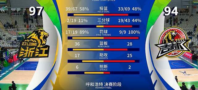 广厦队开始在末节发力,甚至于实现了反超。直到比赛进行的还剩3分半钟,在前17投0中之后,广厦队才由赵嘉仁扔进了第一记三分球。显然,广厦是不想打这个杯赛的,既然不想打,干嘛要晋级呢?吉林队终究是未能顶住压力,最终被广厦队以97-94逆转,惨遭淘汰,无缘4强。