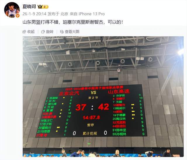 当山东男篮客场凭借珀赛尔绝杀北京队之后,夏晓司老师是十分激动的,他在社交平台写道:“山东男篮客场拿下北京首钢,最大亮点是年轻的后卫谢智杰,敢打敢拼敢突敢投!关键球处理果断。再就是外援珀塞尔,有速度有篮子,带领球队打出不服客场的气势。当然,山东高速男篮全队赢在防守,赢在气势,赢在团结一心,没有包袱,一拼到底! ”