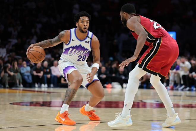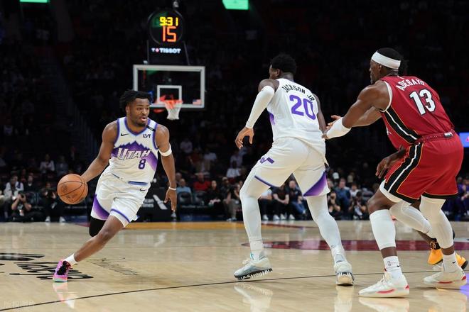 - 想输都难?爵士含泪险胜热火,小贾伦22+5,阿德巴约空砍23+11