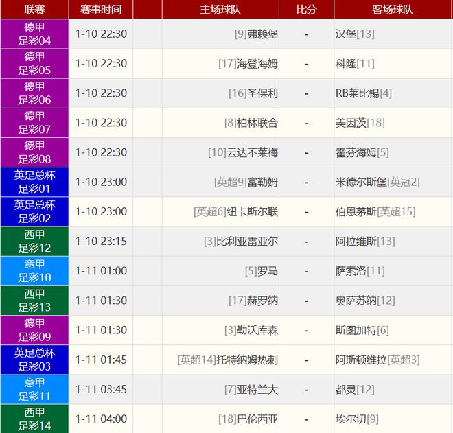 其他赛事比分: