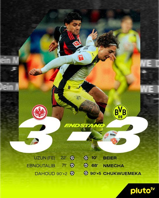 - 2026年01月10日 神剧情!多特3-3法兰克福 达胡德92分钟进球丘库埃梅卡95分钟绝平