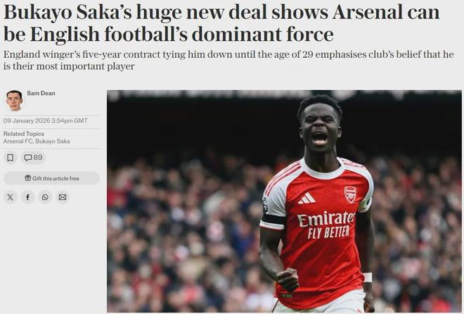 电讯报记者SD发文表示,阿森纳代表在夏天时曾非常明确的告诉引援目标和经纪人,萨卡是俱乐部的特权球员,鉴于此,没有新援能得到比萨卡待遇更高的合同(也不会得到高于萨卡的地位),而新合同将进一步巩固萨卡在队内的地位。